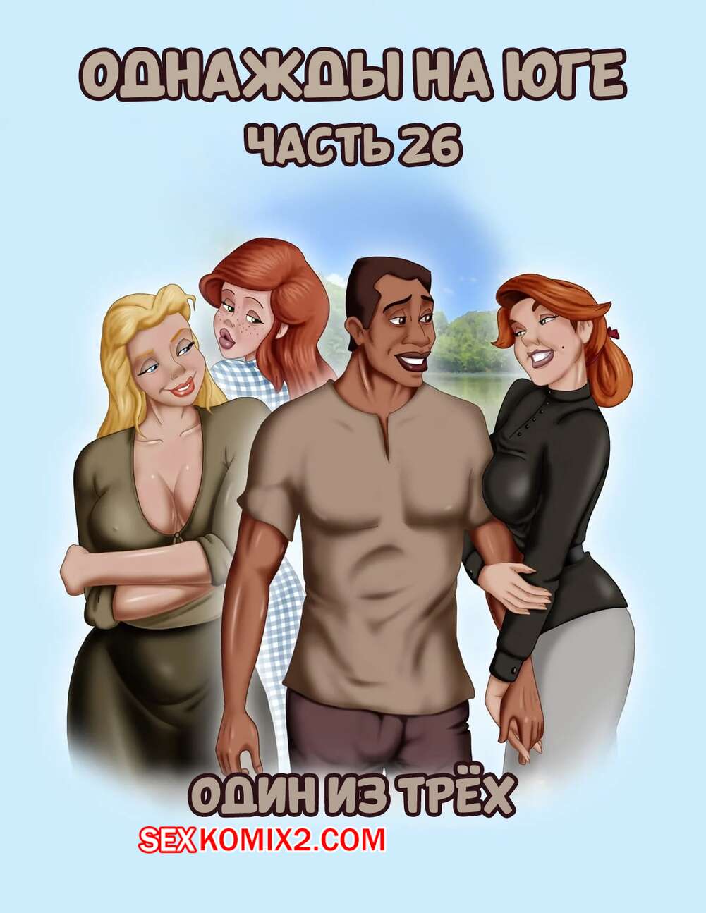 Порно комикс Однажды на юге. Часть 26. Once Upon a Time in the South. Bardot1990 Темнокожий парень пошел искупаться в озере с горячими красотками, где они начали шалить. Девушки отсосали большой хуец своего дружка, а затем дали ему себя выебать.