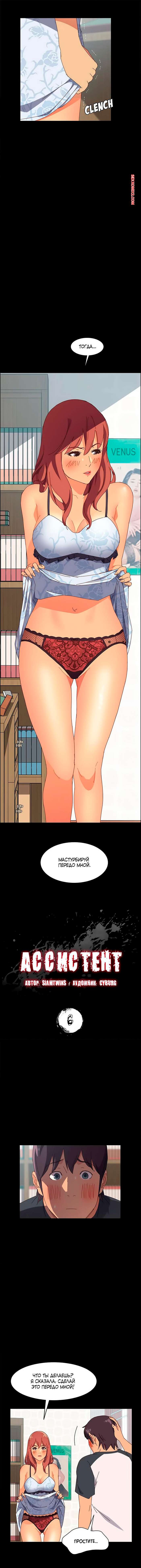 Порно комикс Ассистент. Без цензуры. Часть 6 Рыжая красотка застала парня за дрочкой и возбудилась от увиденного. Она задрала платье и сказала парню продолжить дрочить перед ней. Он не устоял перед влажной киской девушки и стал ей отлизывать.