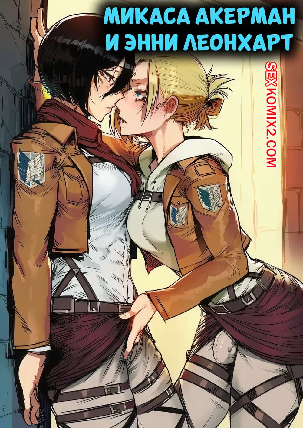 Порно комикс Атака титанов. Микаса Акерман и Энни Леонхарт. RecSefer, Sigabelle. Горячая блондинка возбуждена и хочет секса. Она стала ласкать свою подругу Микасу и возбудила ее, после чего вставила в нее свой большой хуй и выебала во все дырочки.