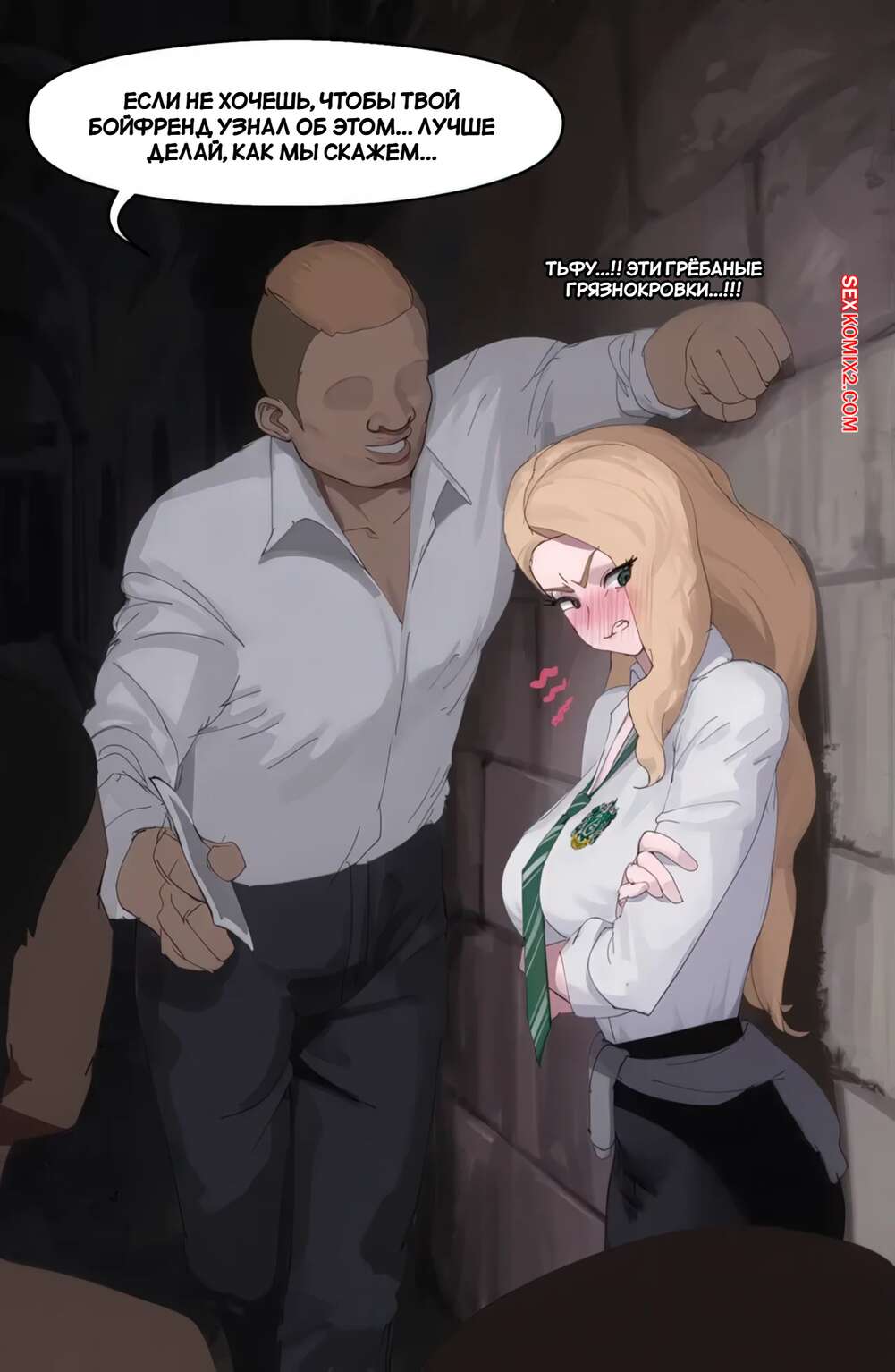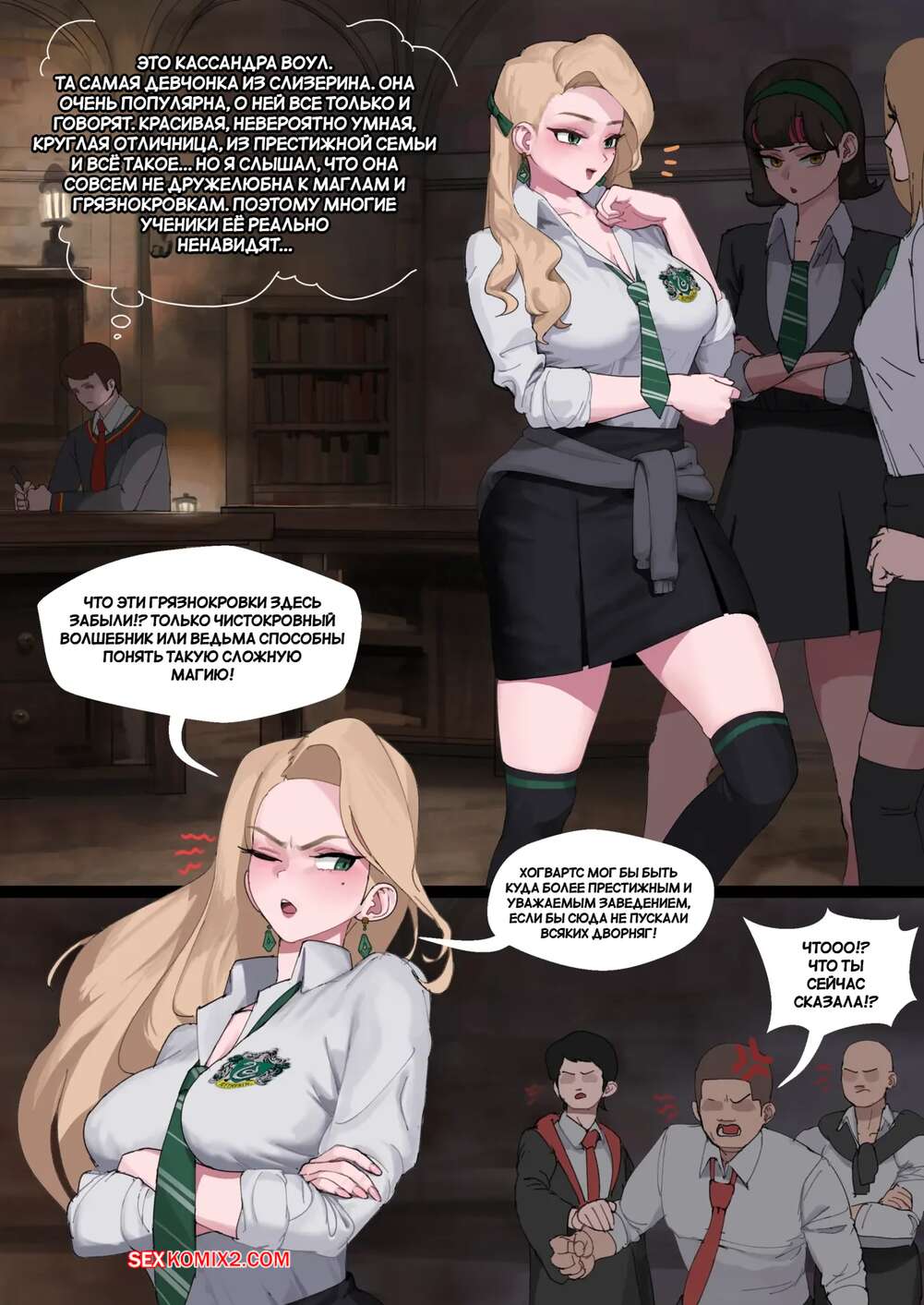 Порно комикс Гарри Поттер. Кассандра ненавидит грязнокровных. Cassandra hates mudbloods. Wjs07. Горячая блондинка не скрывает свою ненависть к грязнокровкам. Темнокожий парень решил ее проучить за это и раздел сучку, после чего выебал ее пизду и заполнил спермой.