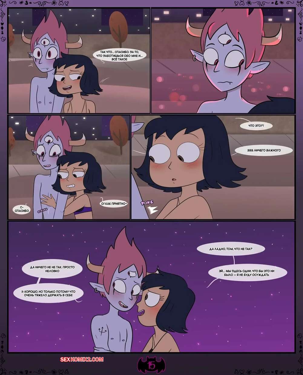 Порно комикс Стар против. Душа связанная узами. Soul Bound. Bluenightkitty. Горячая брюнетка хочет трахнуться со своим дружком и приглашает его уединиться. Девушка ведет себя игриво и быстро вызывает у парня каменный стояк, что ему тяжело сдержаться, чтобы не кончить.