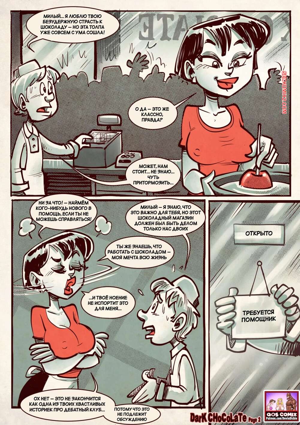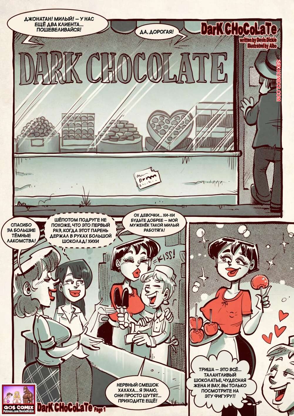 Порно комикс Открой для себя богатый вкус темного шоколада. Devin Dickie. Брюнетка милфа начала поиск помощника в свой кондитерский магазин и к ней пришел темнокожий парень. Он сразу понравился красотке и она его приняла, что очень не нравится ее мужу.