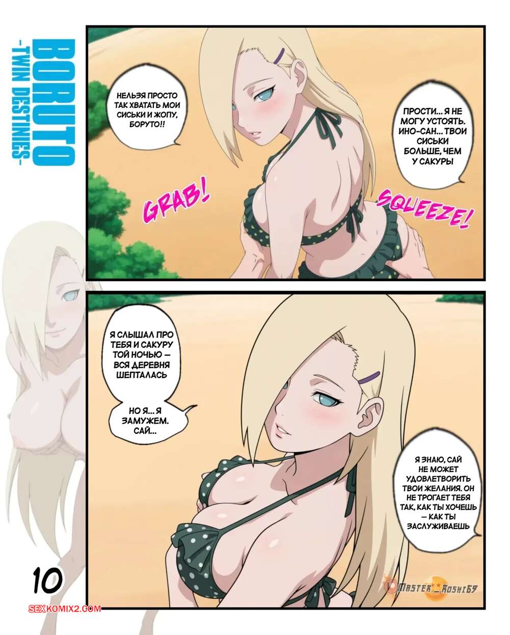 Порно комикс Наруто. Двойная судьба. Часть 3. Naruto. Twin Destinies. Master roshi69 Красотка Ино отдыхала на пляже и заметила на себе похотливые взгляды Боруто. Блондиночка встала на колени перед парнем и стала сосать его член, после чего раздвинула ножки и дала выебать свою пизду.