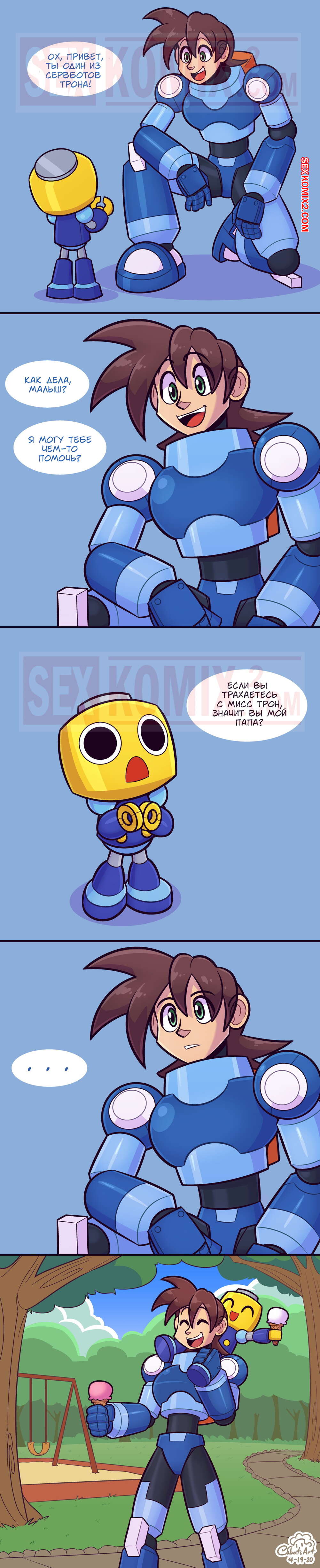 Порно комикс Мегабой. Трон Бонн и Мега Двеб. Tron Bonne and Mega Dweeb Шикарная сисястая милфа оказалась просто без ума от молодого парня в экзо костюме. Она набросилась на него, чтобы достать его член, и принялась отсасывать. Как только член стал очень твердым, она оседлала его и хорошенько выебала.