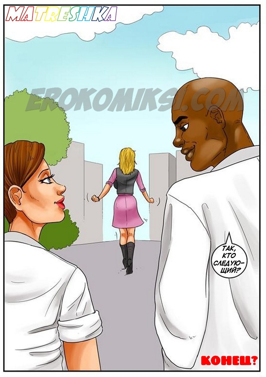 Порно комиксы на русском языке .Банк спермы. Часть 2. В продолжении этого легендарного комикса вы увидите молодого чернокожего парня, который в первой части был обычным пареньком, но теперь он разбогател на том, что сдавал сперму. И вот в банк спермы пришла сексуальная блондинка с большими сиськами и захотела воспользоваться услугами этого заведения. По правилам банка девушка может видеть донора, когда она увидела фотографии чернокожего гиганта, то очень сильно возбудилась, и её захотелось с ним потрахаться. У администратора выяснила адрес и номер телефона этого парня, созвонилась с ним и приехала к нему в гости, чтобы заняться сексом.