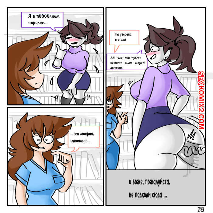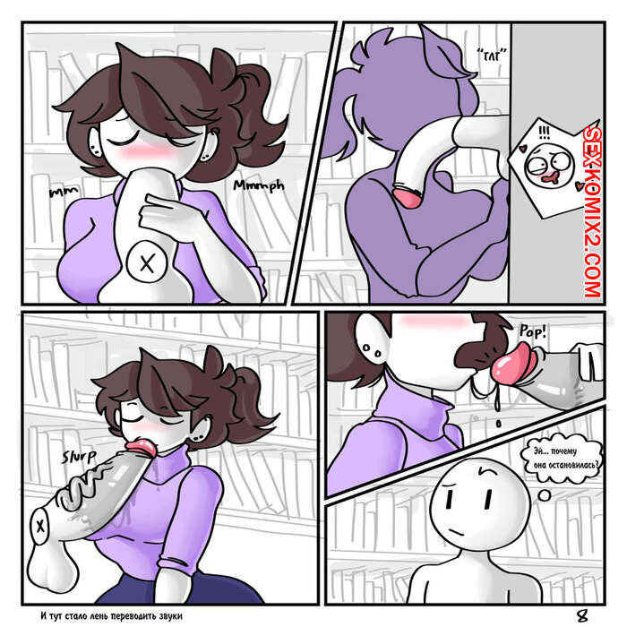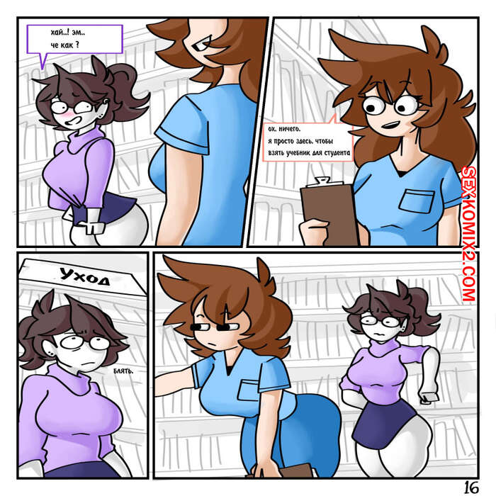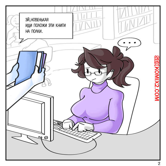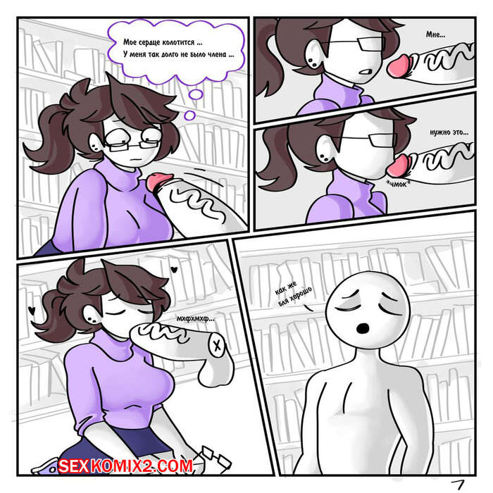 Порно комикс За Полками в библиотеке Красотка отправилась в библиотеку, чтобы поразвлечься с парнями, которые совали ей свои хуи сквозь полки, а она делала им классный отсос, заставляя кончить. Но там ее застала другая красотка и они решили повеселиться вместе..