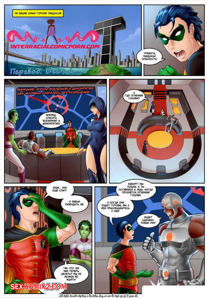 Порно комикс Титаны. Похотливый киборг Рыжая красотка потревожила Киборга во время просмотра кино и поедания пиццы. Она стала просить от него его большой член. С этого момента, Киборг стал удовлетворять сучку своим большим черным хуем, трахая ее в рот и пизду.