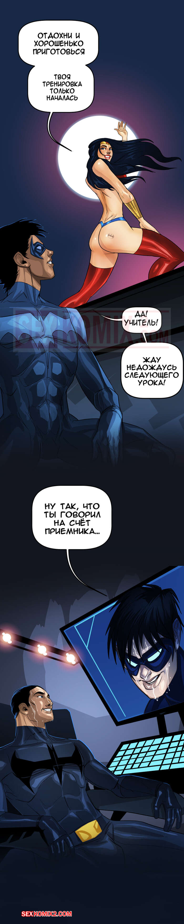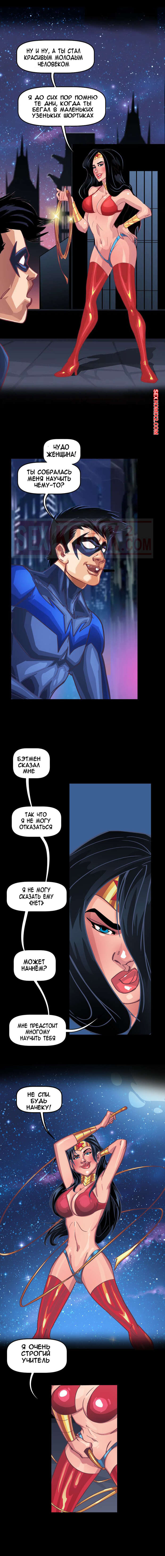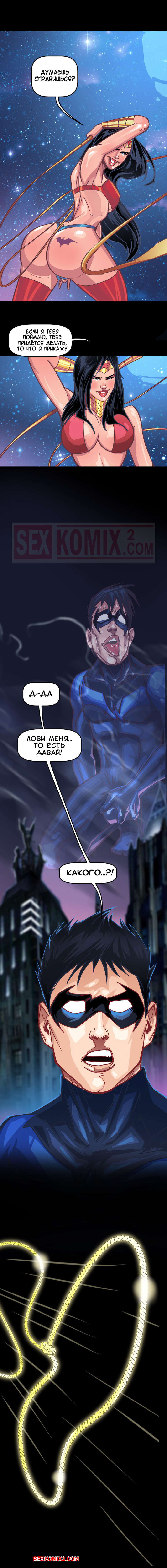 Порно комикс Лига Справедливости. Я хочу Бетчлен. Tease Comix. Чудо женщина и черная кошка похоже выпили какой-то возбудитель. Только так можно объяснить их желпние трахнуть парней из лиги. Одна поймала Найтвинга своим лассо, а вторая пробралась в Бетпещеру, чтобы соблазнить Брюса.