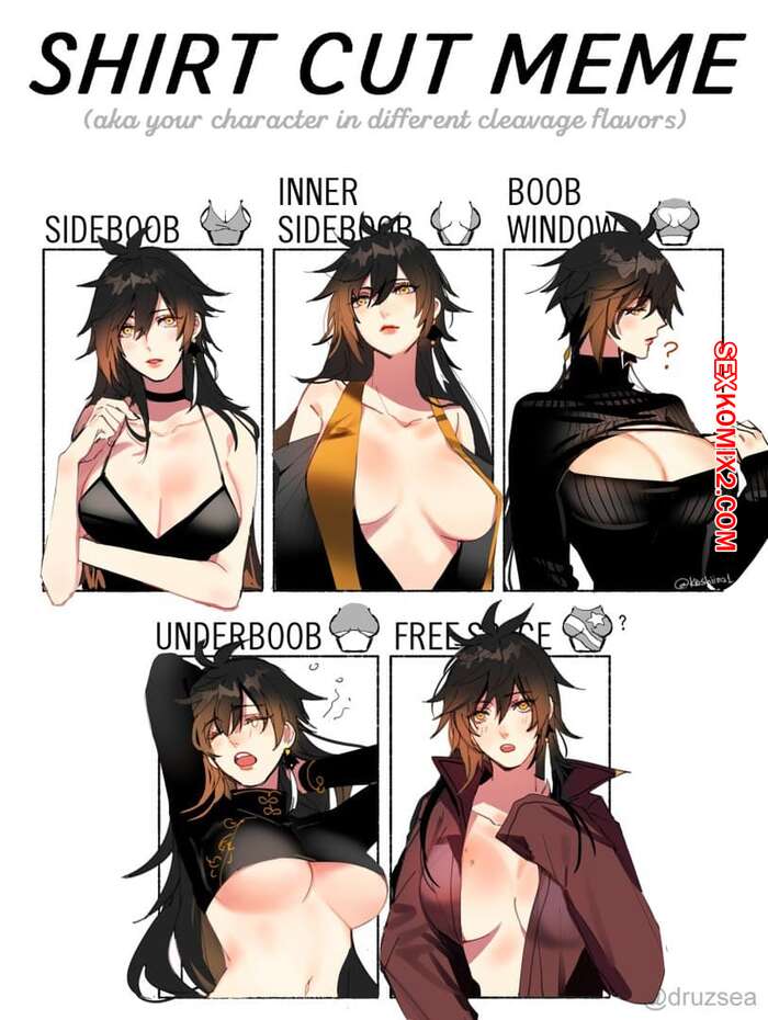 Порно комикс Рубашечный покрой. Shirt cut meme Подборка картинок с шикарными красотками, которые мерят на себе различные рубашки. Эти рубашки настолько откровенны, что любой зритель прекрасно видит огромные сиськи красоток, которые прямо вываливаются из под ткани.