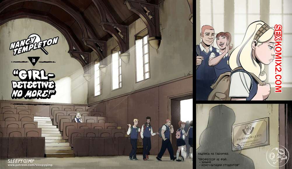 Порно комикс Нэнси Темплтон Больше не детектив. Sleepygimp Горячая училка соблазнил свою красивую ученицу блондинку и заставила ее лизать ее пизду и ножки. Потом она решила хорошенько ее связать, лишив всякой возможности двигаться, чтобы хорошенько трахнуть ее своими игрушками.