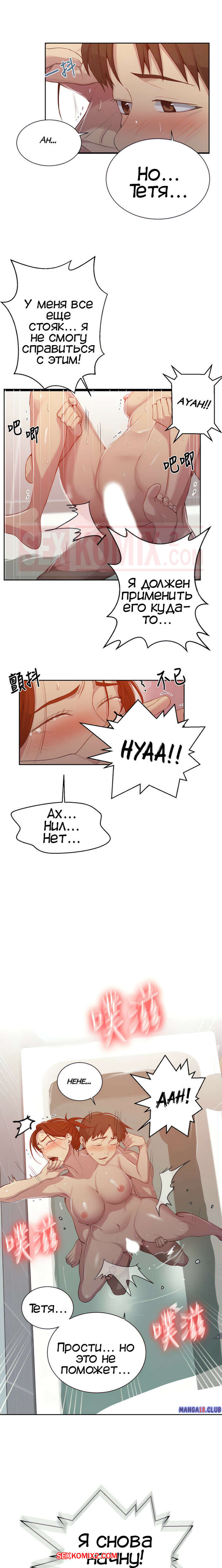 Порно комикс Тайное обучение. Часть 88. SecretClass. Тетя и племянник трахаются в ванной, в дали от всех. Парень не хочет останавливаться, а женщина понимает если он продолжит, то она не сможет больше заниматься сексом со своим мужем, ей будет его мало.