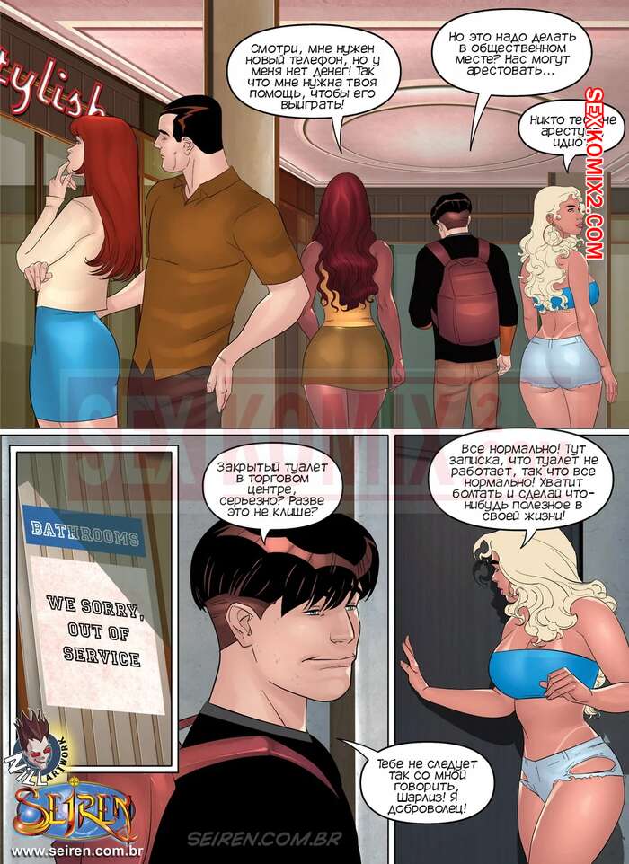 Порно комикс Сука в западне. Часть 2. Эпизод 1. Seiren Красотка разбила телефон и теперь ей надо участвовать в откровенном конкурсе, чтобы выиграть телефон. Она попросила знакомого парня ей помочь, и они отправились в общественный туалет торгового центра, где он ее выебал, пока ее подруга все это снимала.