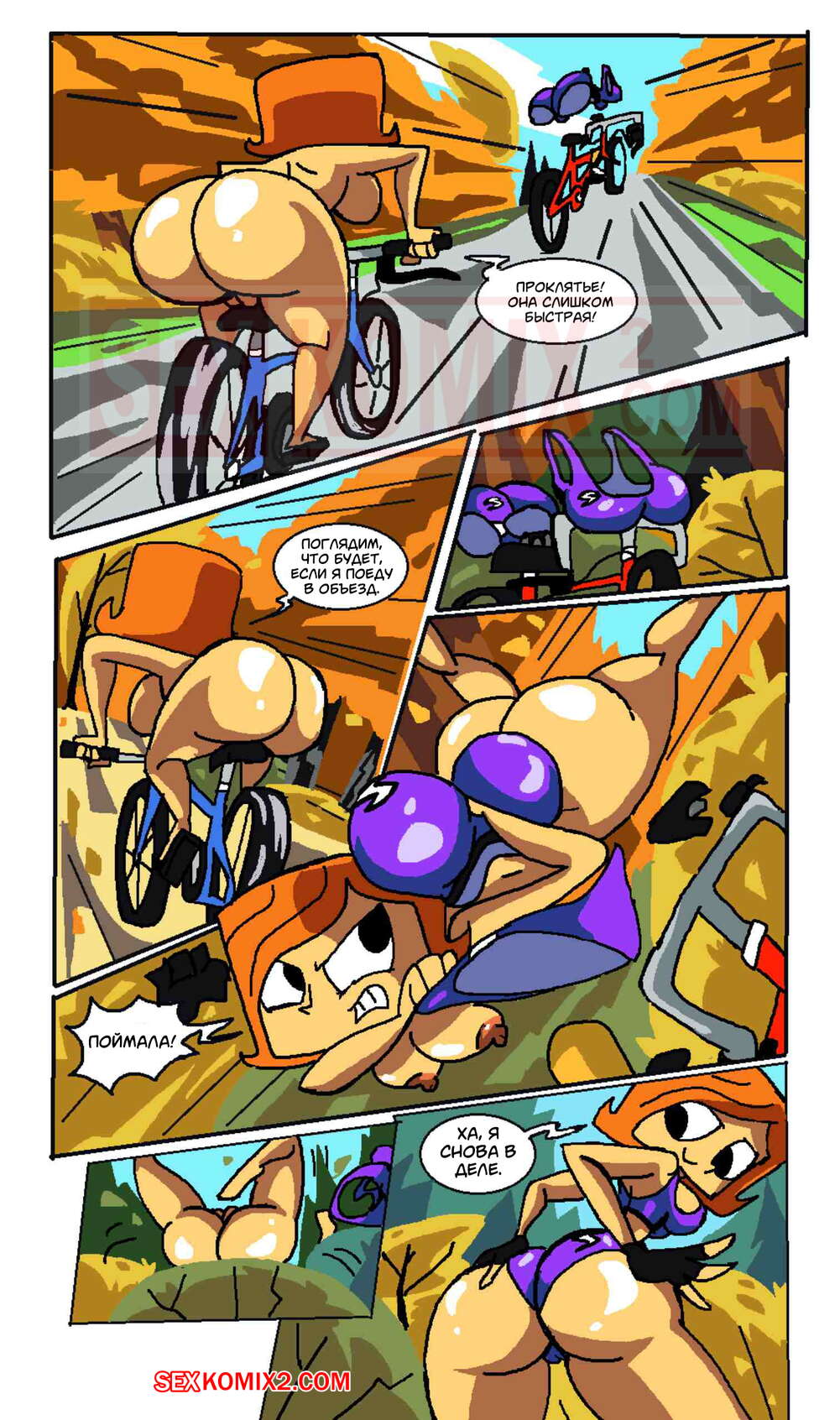 Порно комикс Радость езды. Joy Ride. Manic47 Красавица каталась на велосипеде и решила сделать перерыв, для чего специально разделась. Сучка отпустила свой велосипед, и он уехал, поэтому ей пришлось забрать велосипед у мальчика, чтобы догнать его.