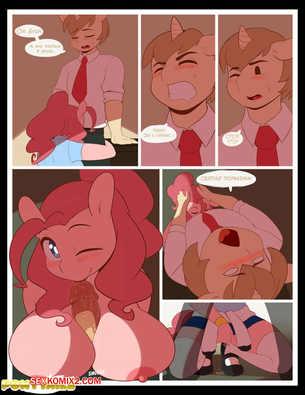 Порно комикс My Little Pony. На ступеньку выше Молодая сисястая ученица пришла к своему учителю, чтобы исправит оценку. Она решила сильно постараться для этого, поэтому встала на колени и начала сосать его большой хуй, а потом дала себя выебать.