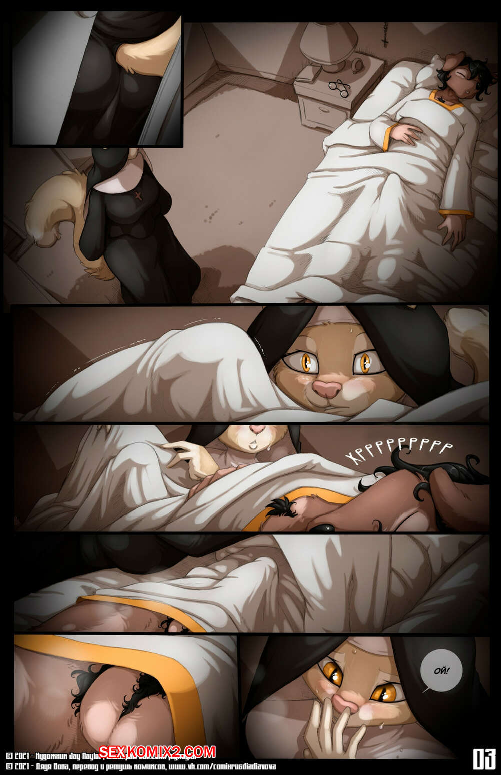 Порно комикс Фурри. Пока Бог Спит. Монахиня очень долго воздерживалась от секса, когда она увидела оголённый хуй парня, не смогла удержаться. Она открыла свой рот и начала его сосать.
