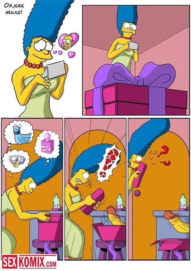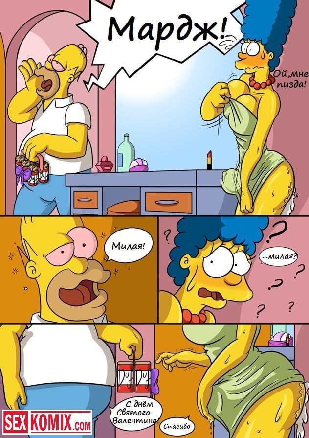 Порно комиксы С Днем святого Валентина. Когда Мардж пришла домой, она увидела на столе открытку с поздравлениями в честь дня святого Валентина. Женщине было очень приятно, а когда она зашла в туалет, стало ещё приятнее. Через отверстие в стене торчал здоровенный и толстый член, женщина очень обрадовалась этому подарку своего мужа, и с удовольствием принялась его сосать. После того как она хорошо сделала миньет, она насадилась на член своей киской. Это был незабываемый секс.