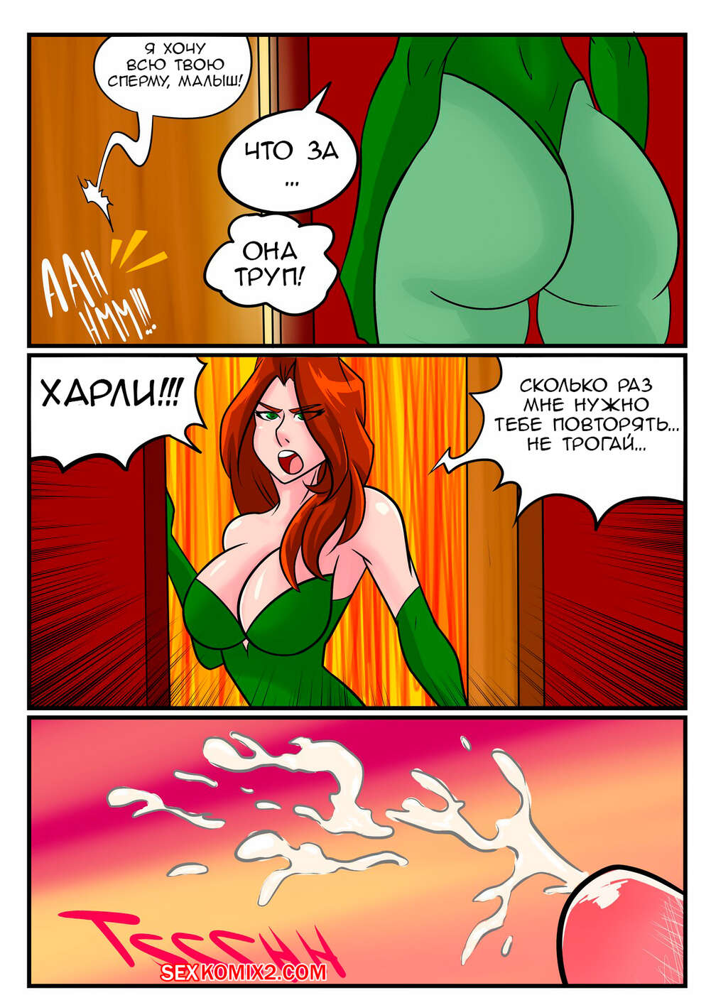 Порно комикс Сексуальные игры Харли Квинн. Часть 2 Горячая блондиночка Харли Квин хотела повеселиться и встретилась с Бэтменом. Она встала на коленки и стала сосать его большой хуй, после чего раздвинула свои ножки и дала ему себя хорошенько выебать.