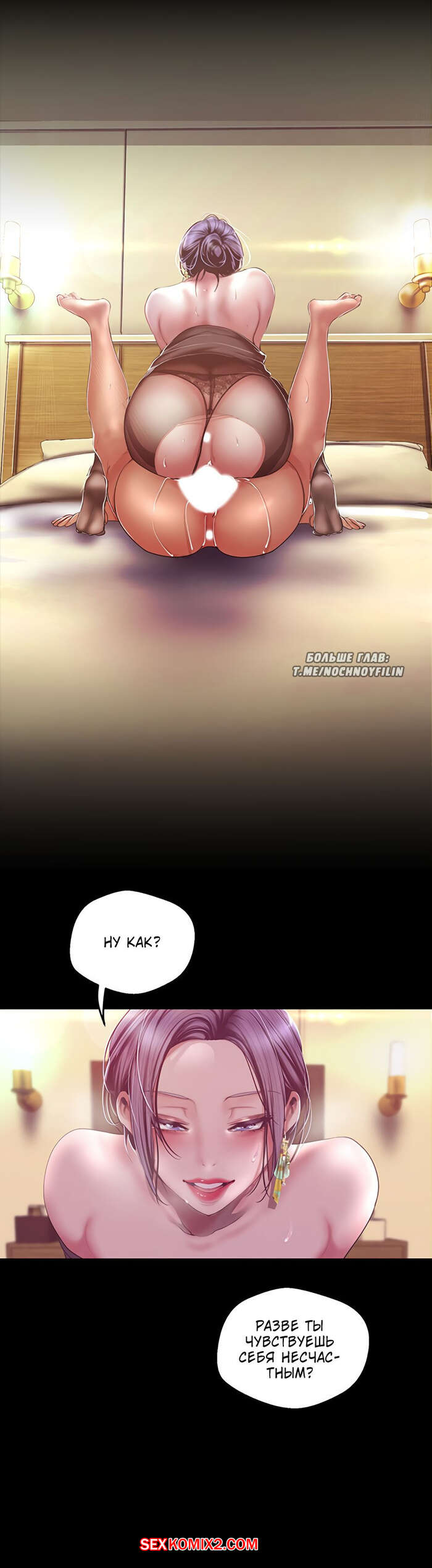 Порно комикс Прекрасный Новый Мир. Части 99 и 100 и 101. Beautiful New World Горячая сисястая брюнетка уложила парня на кровать и разделась перед ним. Она стала сосать его большой хуй, а затем залезла на него сверху и дала пареньку себя хорошенько выебать.