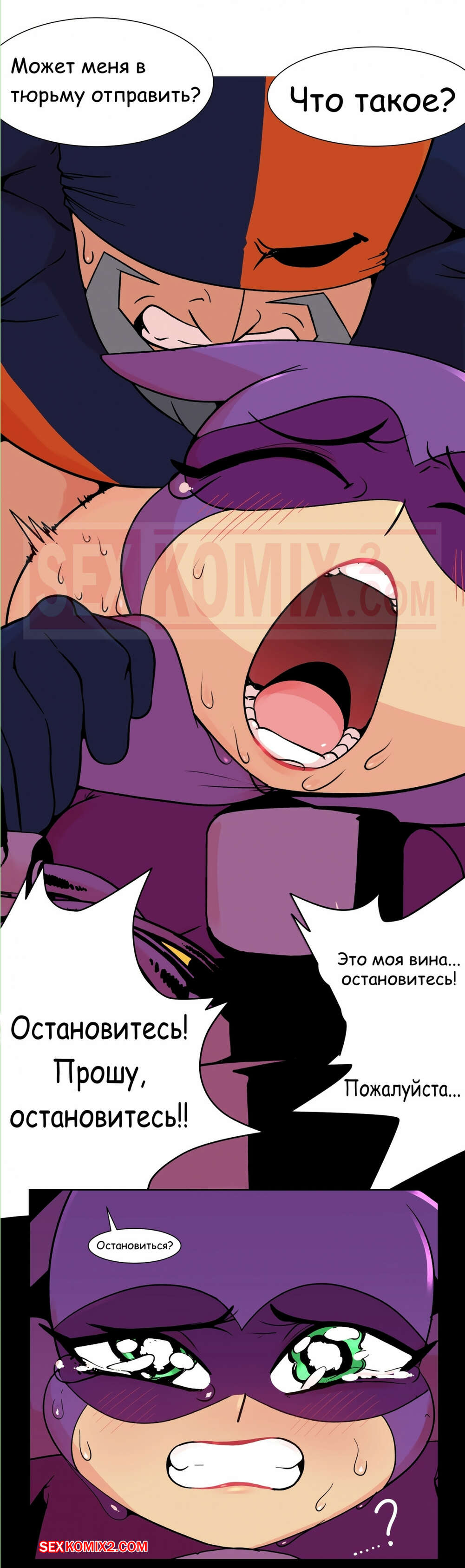 Порно комикс Нерешенный комплекс Бэтгерл. Batgirl Unresolved Complex Дэфстроук схватил молодую красотку Бэтгерл в подворотне. Он стянул с нее штаны и поставил раком, чтобы хорошенько выебать ее своим большим хуем, а затем сфоткал все это и отправил фото ее отцу.