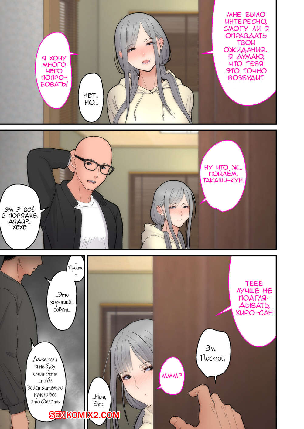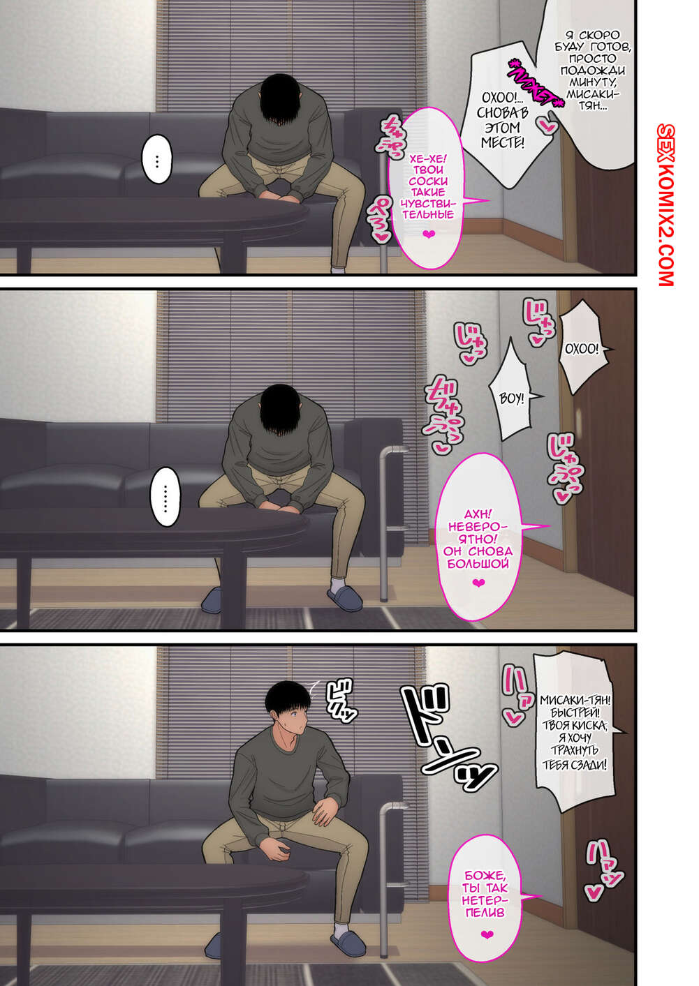 Порно комикс Мысли моей жены. Часть 2. Tsuma Omoi, Netorase Горячая милфа продолжает свои измены мужу пока он наблюдает за этим. Сучка постоянно веселится со своим дружком, отсасывая его большой хуй и давая ему себя хорошенько выебать.