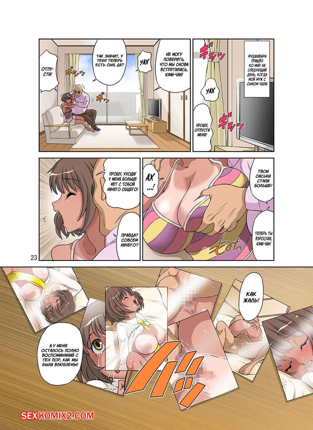Порно комикс Рогоносец веселая мама. Netorare Genki Mama Толстый мужик засмотрелся на молодую сисястую брюнетку. Он силой уложил ее на диван и раздел, а затем стал хорошенько ебать ее в рот и ее тугую пизденку, получив огромное удовольствие.
