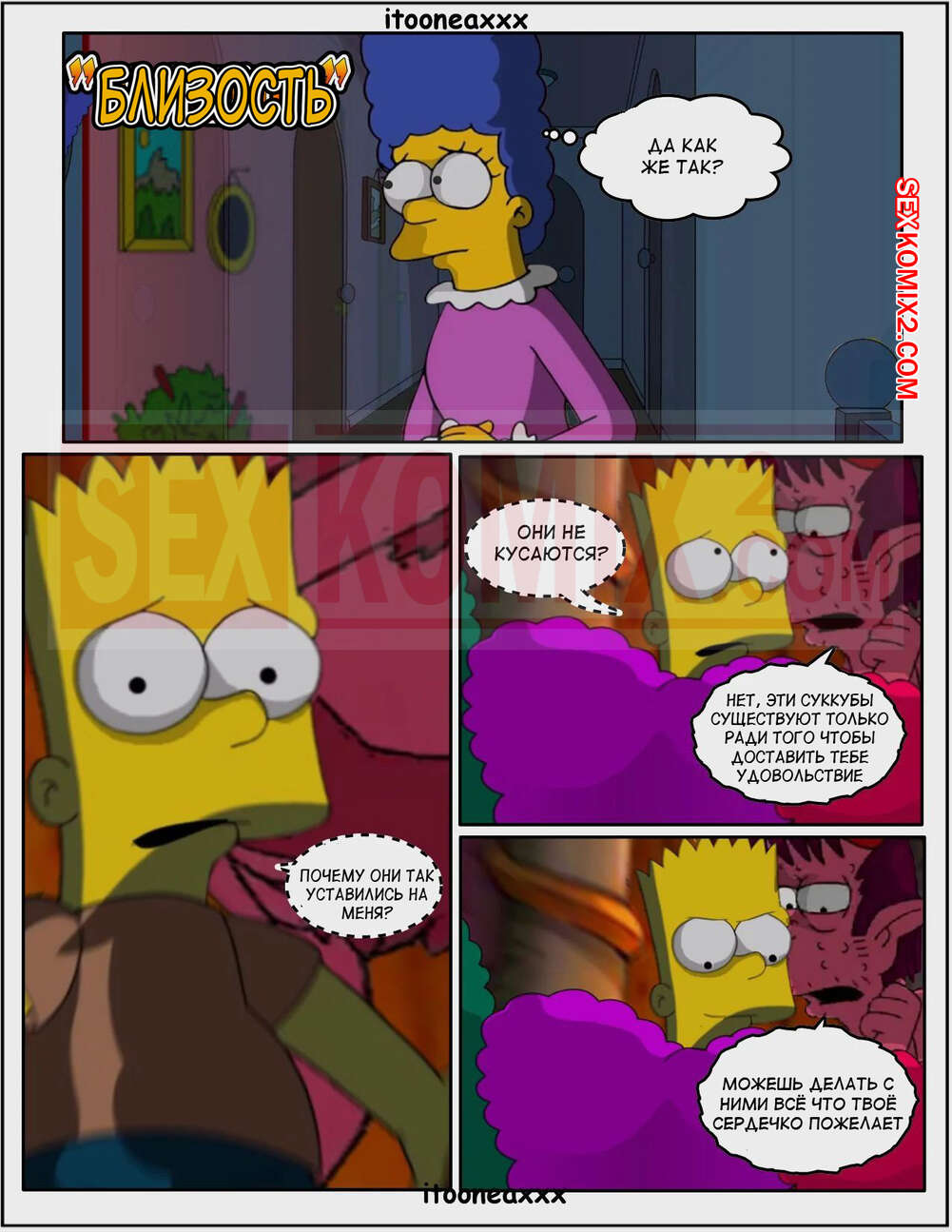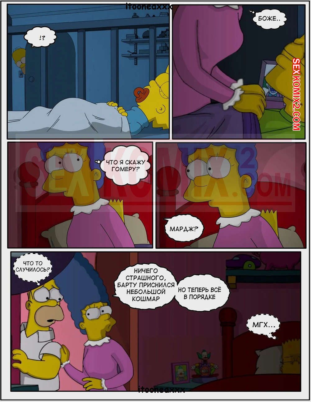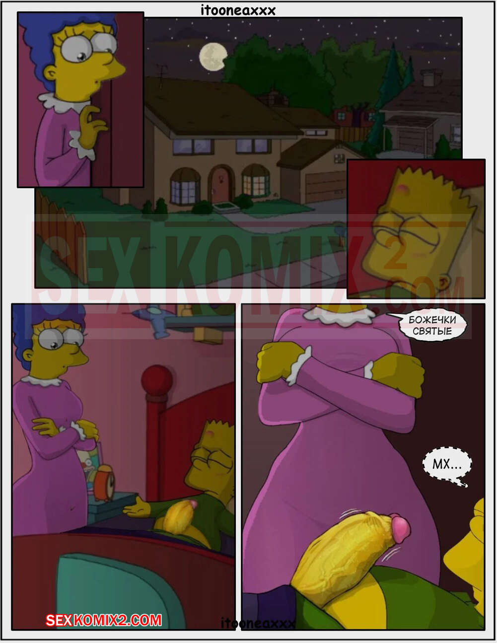 Порно комикс Симпсоны. Близость. Часть 2. Simpsons. Obsession. IToonEAXXX Барту и его мамке стали сниться сны, что они постоянно трахаются. Мамка отправилась к сыну в комнату и увидела у него сильный стояк. Милфа решила помочь сыну и стала у него сосать, после чего дала себя выебать.