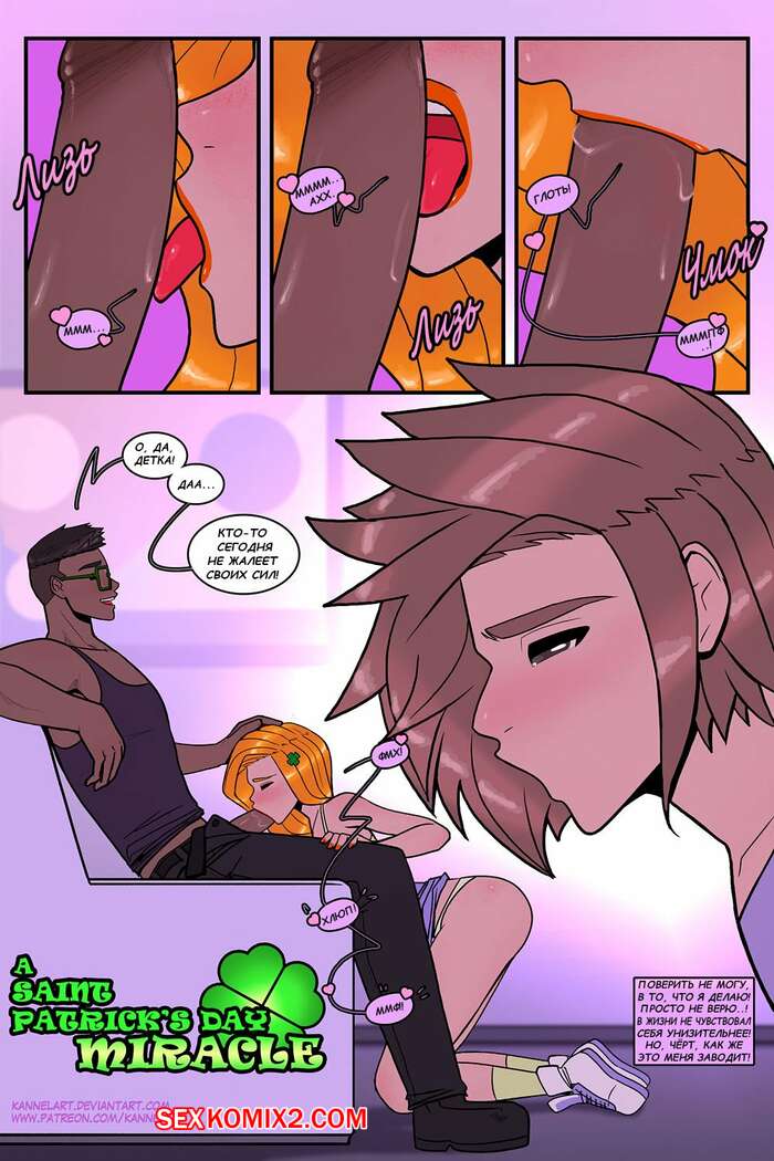 Порно комикс Чудо дня Святого Патрика. A Saint Patrick Day Miracle. Kannel Парень принес на руках горячую красотку к себе домой. Они решили повеселиться и сучка встала на колени, чтобы отсосать большой черный член парня, а затем она дала ему себя хорошенько выебать.