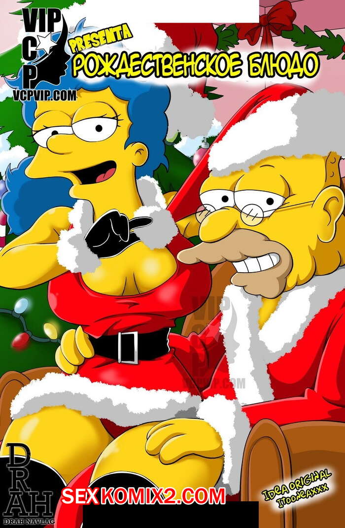 Порно комикс Симпсоны. Рождественское блюдо Сисястая милфа прогнала своего мужа из дома в рождественскую ночь. К ней приехал его отец и она решила устроить ему сюрприз. Сучка надела сексуальное праздничное белье и отсосала хуй деда, после чего дала ему себя выебать.