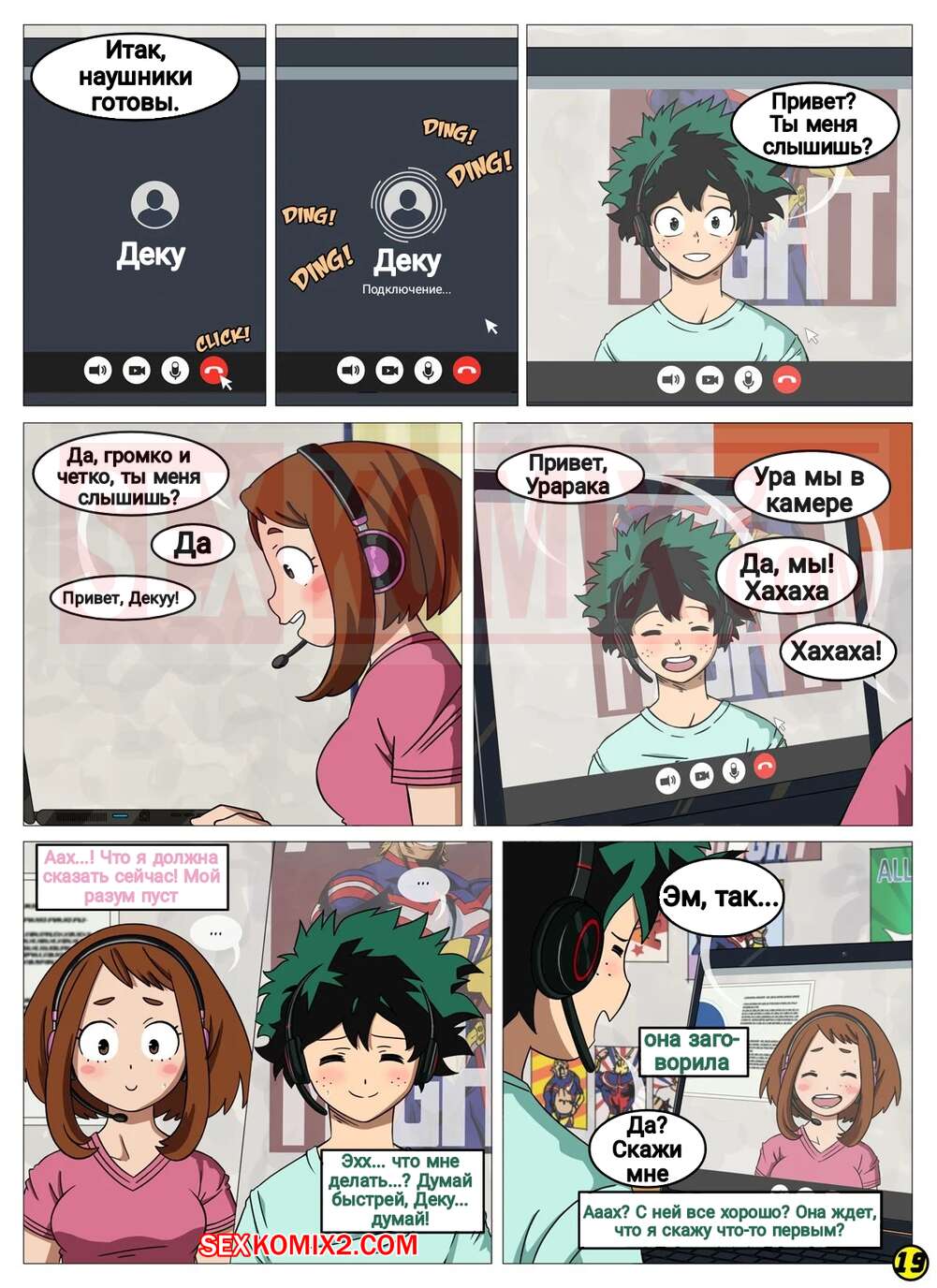 Порно комикс Академия. Я тебя вижу. I See You. My Hero Academia Молодая горячая красотка брюнетка решила повеселиться со своим дружком по видео связи. Она разделись друг перед другом и продемонстрировали свои шикарные тела, а затем стали дрочить себе.