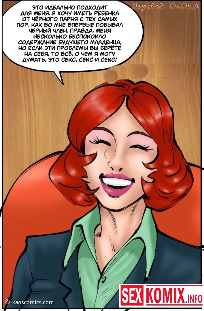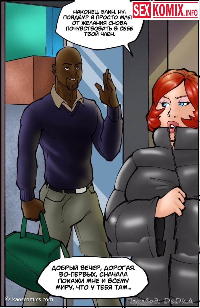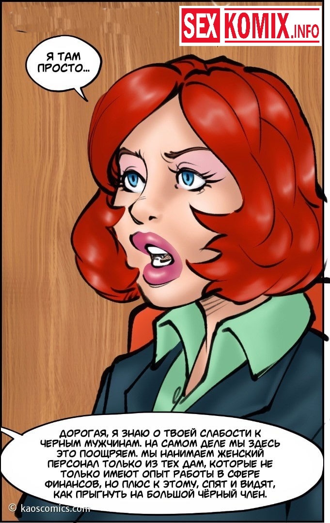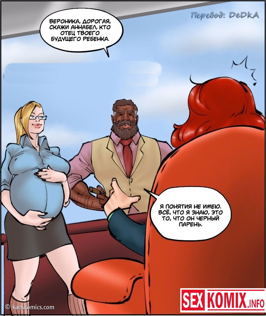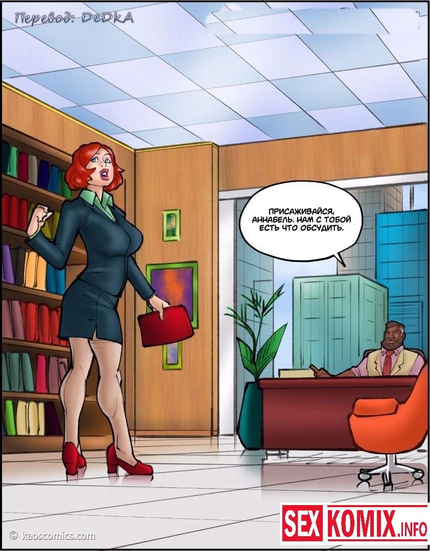 Порно комикс Новая жизнь Аннабель. Часть 2. Очень сексуальная девушка с огненными волосами пошла по новому пути в своей жизни, она бросили своего мужа и погрузилась в мир секса и разврата. В этот вечер красотка со своей подругой отправилась в ночной клуб, чтобы удовлетворить чернокожих парней. Она уже набралась опыта и теперь легко может справиться с двумя огромными черными членами одновременно.