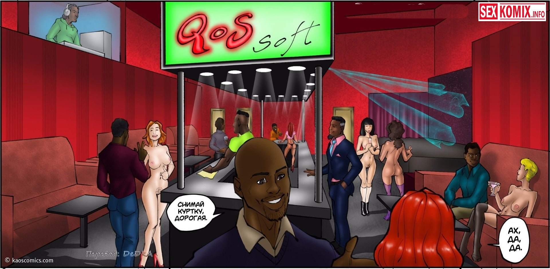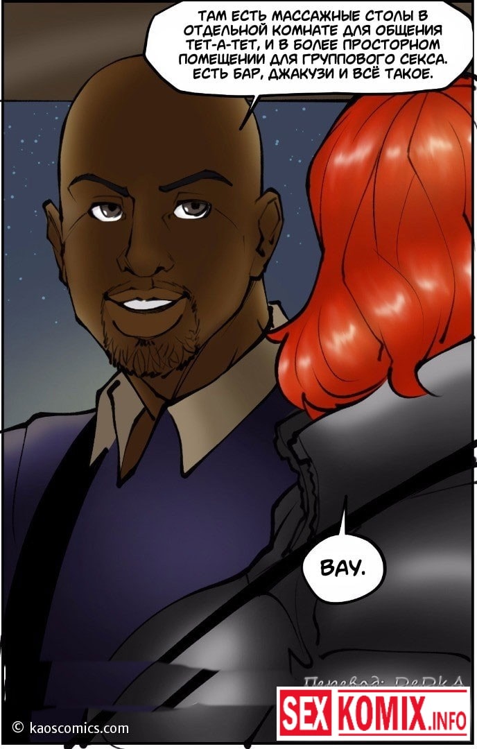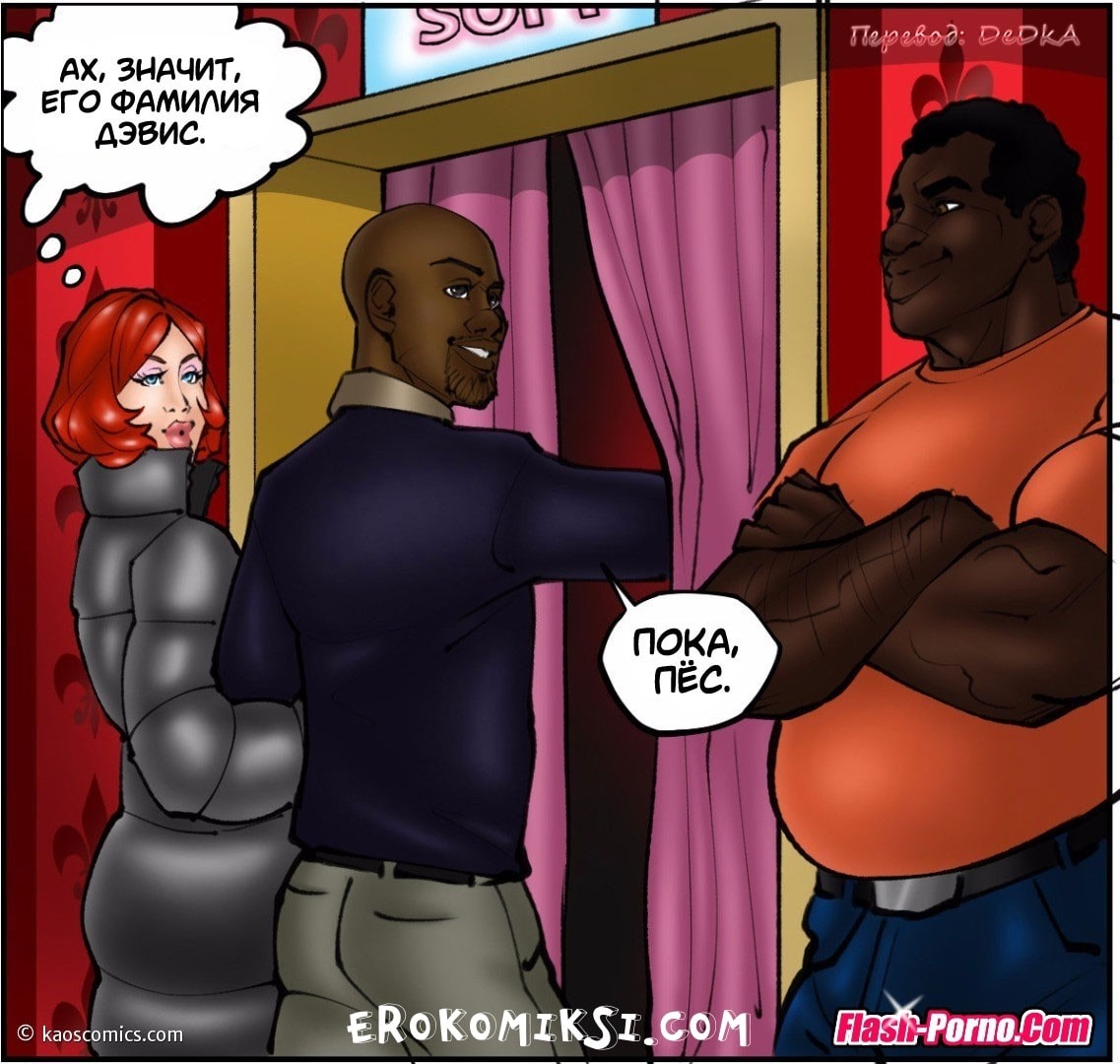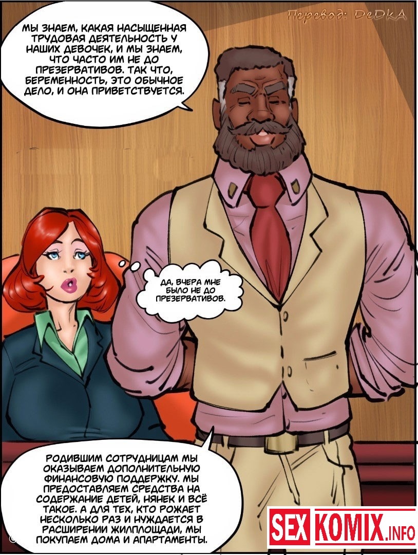 Порно комикс Новая жизнь Аннабель. Часть 2. Очень сексуальная девушка с огненными волосами пошла по новому пути в своей жизни, она бросили своего мужа и погрузилась в мир секса и разврата. В этот вечер красотка со своей подругой отправилась в ночной клуб, чтобы удовлетворить чернокожих парней. Она уже набралась опыта и теперь легко может справиться с двумя огромными черными членами одновременно.