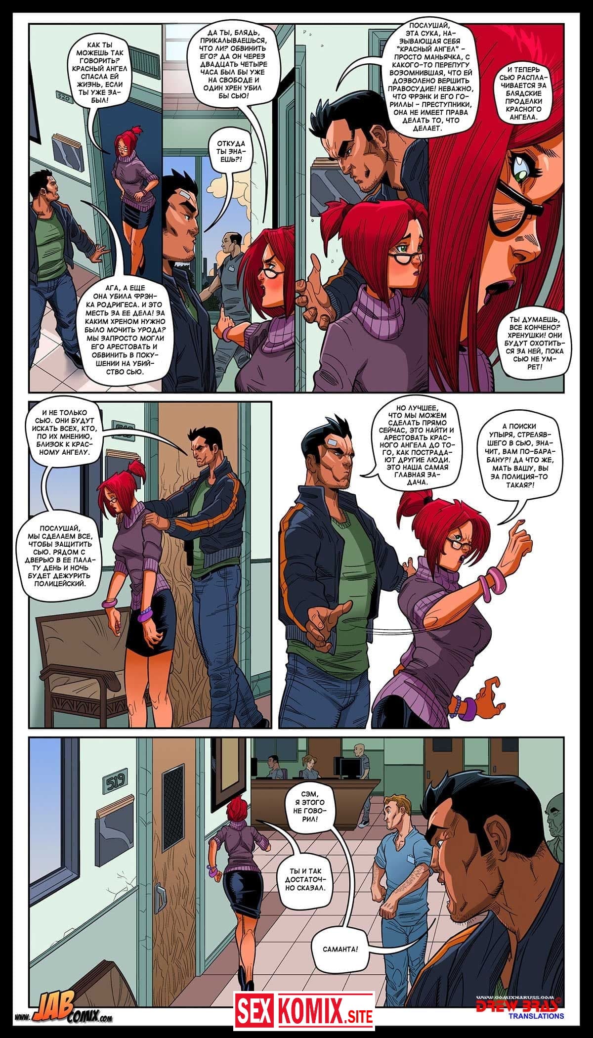 Порно комикс Красный ангел. Часть 2. Девушке приснился ужасный сон и когда она проснулась, подумала, что это какой-то знак. А когда красотка пошла в гости к своей подруге, там был её парень и они занимались горячим сексом. Она засмущалась, но пара пригласила её в кровать, что бы заняться сексом втроем.